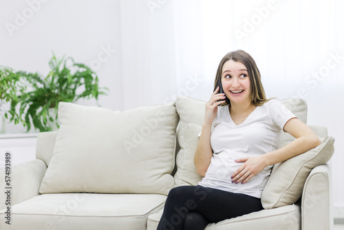 female, facial expression, pregnant, discussion, phone, talking, sofa, idea, inspiration, sitting, human face, eltern, stomach, smiling, looking, mother, abdomen, living room, touching, anticipation, eye, cushion, background, white background, white color, waiting, one person, happiness, relaxation, neck, photo, hand, domestic life, cosy, comfortable, creativity, casual clothes, clothing, hair, human lips, human hand, excitement, new life