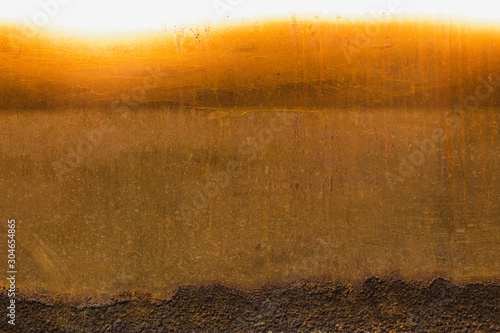 Photo of rough rustic metal or iron wall with light and copy space. Concept for backdrop, background, banner,interior and exterior design, construction and building structure, and wallpaper.