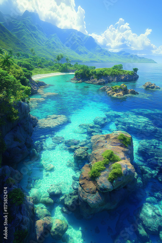 Photo réaliste d’un archipel tropical entouré d’eaux turquoise