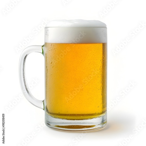Photograph of a Frosty Frothy Mug of Golden Craft Beer Isolated on a Bright Clean White Background Perfect for Product Packaging Advertising and Commercial Marketing Purposes