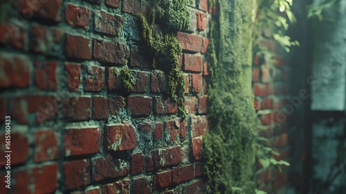 brick, wall, texture, moss, green, plant, stone, damp, weathered, old, rustic, decaying, vertical, surface, building, construction, overgrown, nature, foliage, brickwork, aged, vintage, urban, decay, dampness