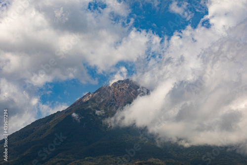 Photograph of massive cloud-covered Ebulobo volcano, Nagekeo Regency, East Nusa Tenggara, Flores, Indonesia