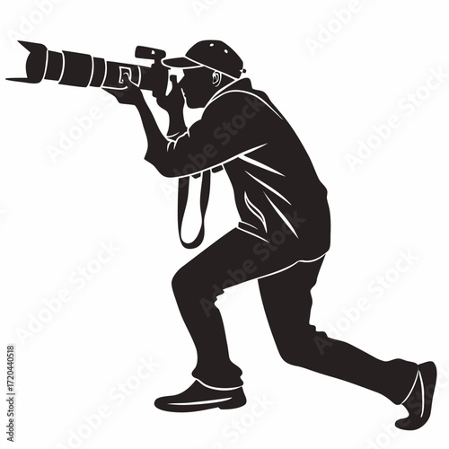 Photographer aiming long lens silhouette