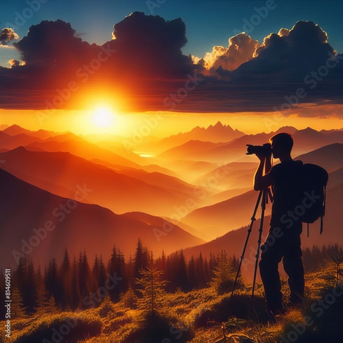 Photographer taking pictures of nature. World Photography Day. Generative Ai.
