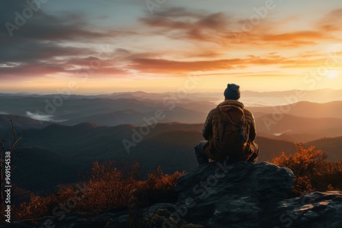 man, person, photo, adventure, scenery, nature, adult, sky, backpacking, backpack, clothing, mountain, autumn, human, photo, bag, hat, darkness, landscape, recreation, outdoors, apparel, forest, hiking, sunset, travel, cloud, tree, sun, meditating, relaxation, silhouette, land, male, rock, fog, avocation, activity, looking, image, contemplation, calmness, wilderness, afterglow, solitude