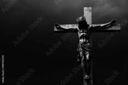 black background, architecture, spirituality, catholicism, cross, photo, monochrome, aesthetic, emotional, sculpture, contrast, crucifix, outdoors, position, extreme, minimal, person, simple, statue, symbol, black, clean, cloud, colours, cross, human, jesus christ, style, white, image, photo, dark, neat, vibe, sky, darkness