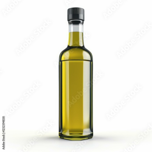 Photorealistic glass bottle containing olive oil, ideal for showcasing packaging and branding designs