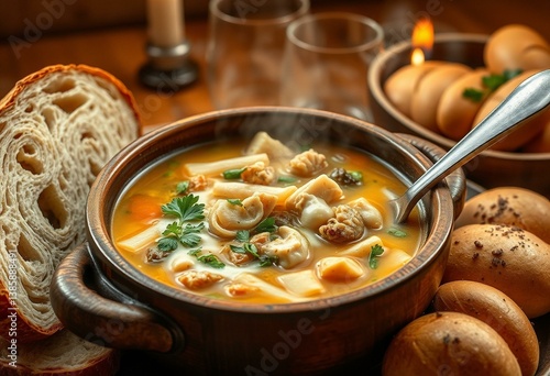 parsley, soft, garlic, gold, bowl, soup, natural, delicious, broth, kitchen, vegetable, dish, food, savoury, fresh, comforting, sauce, cosy, creamy, wooden, rustic, pasta, cookery, wedding, warm, italian, bread, lighting, chicken, candle, crusty, appetising, tasty, brown, glow, tender, knot