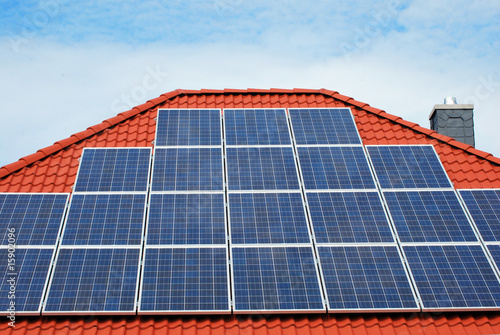 solar cell, solar energy, solar electricity, stream, solar energy, photovoltaic, roof, rooftop, bungalow, blue, red, cell, sustainability, environmentally friendly