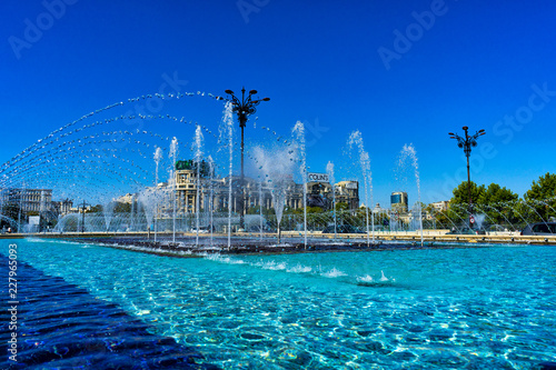 city, horizon, dunk, heaven, sea, city landscape, building, architecture, urban view, center, panorama, travel, outlook, tower, blue, business, night, amusement, fountain, romania, bucharest, water