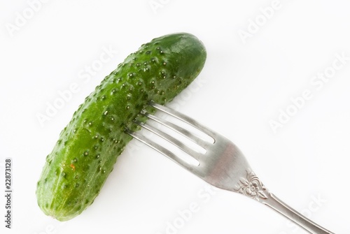 nobody, kitchen, white, shot, studio, utensil, cucumber, object, background, fork, freshness, surface, green, view, epicure, vertical, closeup, arrangement, still, food, side, tine