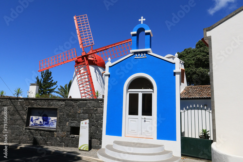agriculture, architecture, atlantic, atlantic ocean, attraction, azores, beautiful, blue, building, coast, construction, europa, european, island, landmark, landscape, lighthouse, miguel, mill, historical building, nature, ocean, old, portugal, portuguese, red, rural, scenic, sky, stone, tour tourism, traditional, travel, travel destination, white, wind, windmill
