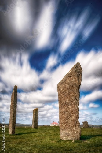 stone, ancient, scotland, stone, historical building, standing, sky, britain, landscape, landmark, neolithic, circle, rock, prehistoric, grass, old, britain, druid, historic, heritage, history