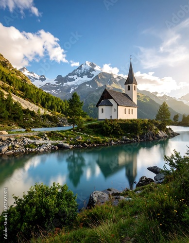 church, lake, mountain, alpine, scenery, nature, landscape, tranquil, serene, idylli, peaceful, travel, vacation, tour tourism, scenic, beauty, stunning, sunrise, sunset, cloud, green, water, alps, europa