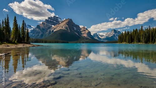 picturesque mountain lake with snow-capped peaks