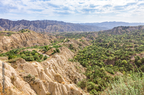 Picturesque view of natural erosion soil in Vashlovani national park. The touristic sights of of Georgia