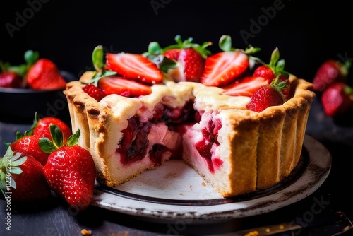 pie Charlotte with strawberries. a healthy diet of fresh vegetables. AI generated
