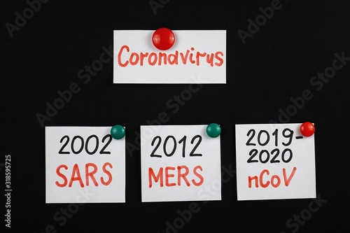 Pieces of paper with information about coronavirus on a blackboard. Using visual aids
