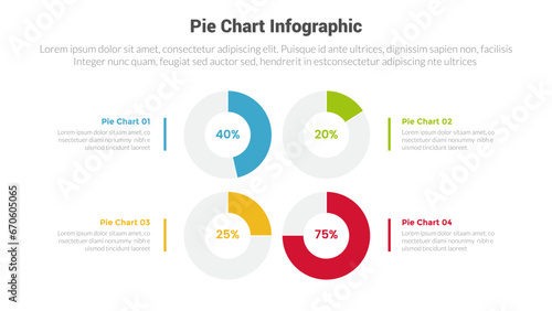 piechart or pie chart diagram infographics template diagram with 4 point with percentage outline circle center design for slide presentation