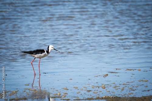 Pied Stilt is a small delicate distinctive black and white bird with very long legs and a long fine black bill