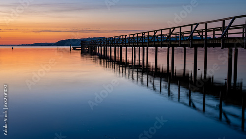 Pier in Harrislee, Flensburg, Baltic Sea at sunrise