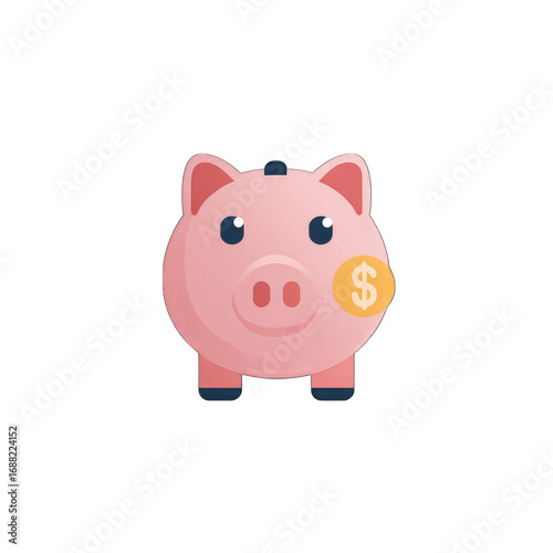 Piggy bank with dollar symbol, savings icon, clean flat design, white background