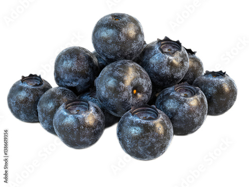 Pile of blueberries with dusty blue coating, farm fresh, isolated on white background