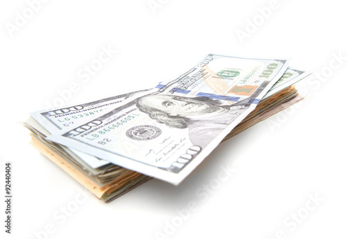 Pile of dollar notes. All on white background
