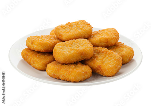 nugget, fried, plate, food, crispy, gold, meal, dish, white plate, isolated, overhead, studio shot, closeup, eat, cooking, cook, unhealthy, nourishment, fast food, tableware, snack, poultry, comfort food, cookery, delicious, eatery, dinner, lunch, tasty, frying, nobody, copy space, background, rectangle, portion, golden brown, serving, fresh, party, processed, ready to eat
