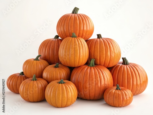 pumpkin, autumn, fall, harvest, orange, vegetable, gourd, stack, pile, many, multiple, food, still life, background, white background, copy space, seasonal, thanksgiving, halloween, october, studio shot, closeup, group, abundance, bright, colourful, vibrant, healthy, fresh, natural, organic, agriculture, farming, produce, decoration, autumn, round, shape, texture, detail