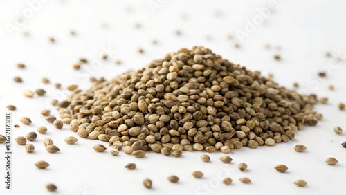 Pile of Raw Hemp Seeds on a White Surface, Superfood with Nutritional Benefits