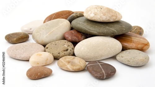 stone, rock, pebble, smooth, pile, collection, aggregate, geology, mineral, texture, surface, natural, earth, colours, beige, brown, grey, white, round, oval, shape, form, closeup, macro, detail, background, design, element, material, object, still life, isolated, white background, studio, photo, image, visual, graphic, composition, arrangement, variety, contrast, pattern, nature, inorganic