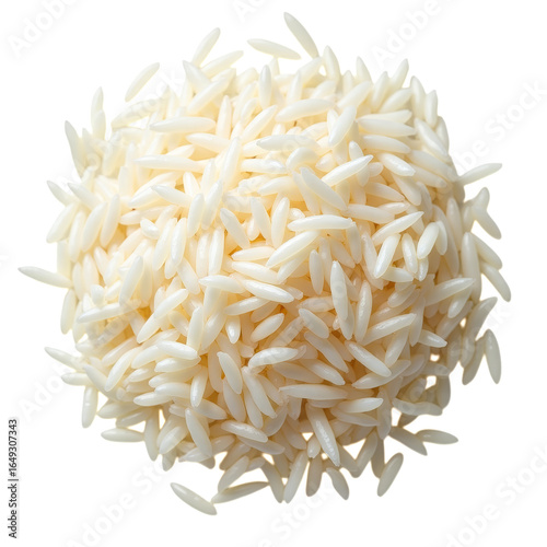 Pile of uncooked white basmati rice grains isolated on a plain white background with details