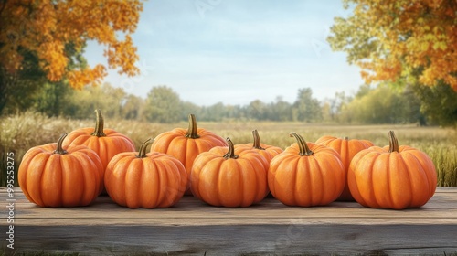 'pile orange pumpkins wooden table fall background banner pumpkin thanksgiving halloween autumn park garden harvest vegetable seasonal holiday squash decoration season agriculture october field farm'