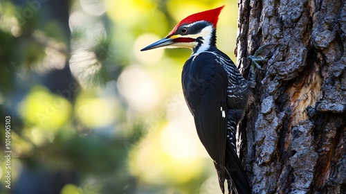 Pileated Woodpecker Bird in Nature, Photo Realistic, Wallpaper, Cover and Screen for Smartphone, PC, Laptop, 9:16 and 16:9 Format