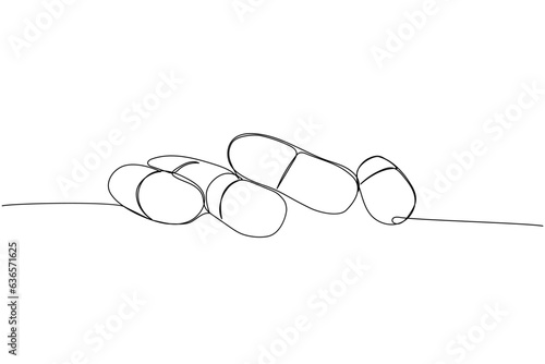 Pill, tablet, drug, pharmacy, capsule, antibiotic, aspirin, herbal, medicine one line art. Continuous line drawing of treatment, medication, medical, pharmacy, therapy, allergy