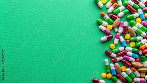 medicine, health, pharmaceutical, treatment, capsule, pharmacy, health care, vitamin, supplement, prescription, pharmaceutical, medication, dosage, disease, wellness, disease, make well, remedy, drugged, colourful, medicals, drug, overdose, pill, green background