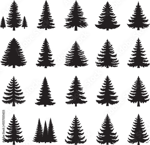 tree, silhouette, vector, icon, set, coniferous, forest, fir, spruce, nature, black, isolated, evergreen, design, element, landscape, symbol, graphic, wood, christmas, winter, park, collection, shape, environment, scenery, natural, plant, logotype, art, decal, wilderness, stamp