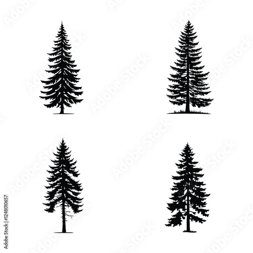 pine tree, tree, silhouette, forest, nature, timberland, vector, collection, illustration, icon, pack, scenery, black, isolated, background, plant, evergreen, coniferous, foliage, timberland, wild, growth, adventure, park, landscape, bush, set, shrub, fir, decoration, logotype, outline, eco, spruce, mountain, christmas, wilderness, tree branch, scene, natural, emblem, design, pine, christmas tree, tree
