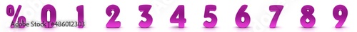 Pink 3d numbers 0 1 2 3 4 5 6 7 8 9 percent sign percentage symbol interest rate set