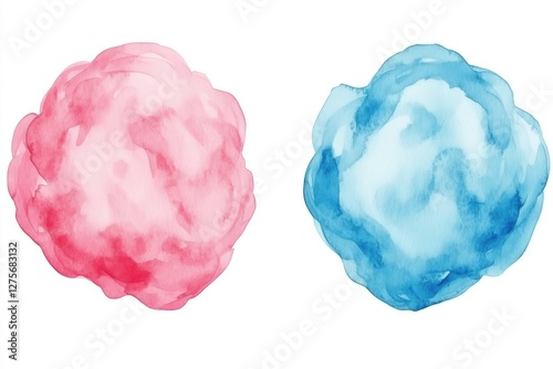 Pink and blue watercolor abstract clouds on white background. Artistic splash effect. Creative design