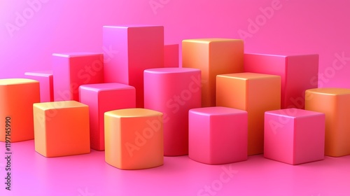 Pink and Orange Blocks: A vibrant collection of pink and orange blocks in varying sizes create a visually appealing and modern arrangement, ideal for showcasing products or concepts.