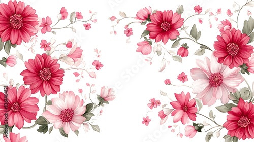 Pink and Red Floral Digital Painting: Delicate Blooms on White Background AI Generated