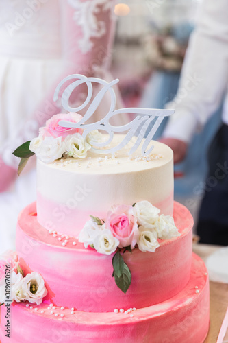 Pink and White Wedding Cake with Roses