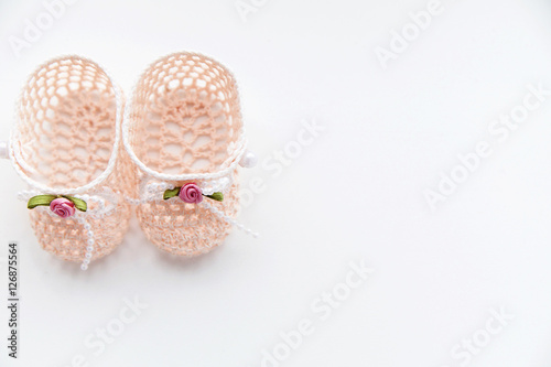 shoe, pink, girl, background, crochet, shower, isolated, baby, copy, white, pregnancy, blank, raise, hand-made, feminine, female, knit up, booty, parenting, empty, children, space
