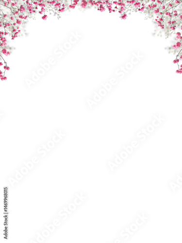 Pink baby's breath flower png. Gypsophila pink white floral design isolated on transparent background Flower frame png. empty space for text. For wedding invitations, floral branding, memorial cards.
