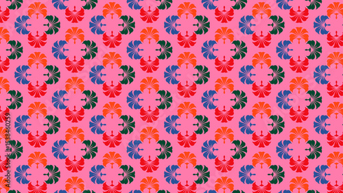 floral, pattern, design, pink, background, seamless, texture, repeat, colourful, many-coloured, flower, geometric, art, art deco, retro, vintage, style, illustration, graphic, wallpaper, fabric, textile, print, surface, decorative, ornamental, mandala, motif, abstract, modern, stylish, trendy