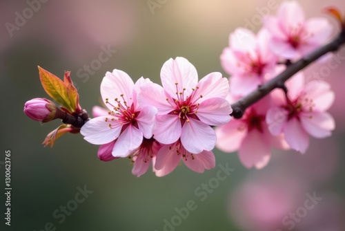 Pink blossoms on tilted spring branch, soft focus background , delicate, beautiful, fresh