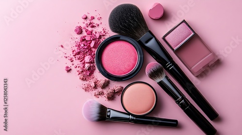 Pink Blush Makeup: A Soft, Romantic Arrangement of Cosmetics and Brushes