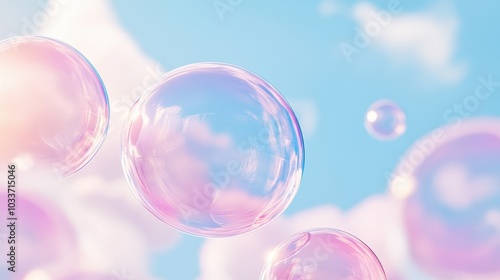 Pink bubbles floating in the sky with a blue background